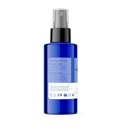 • This deodorant formula features just three ingredient elements: naturally-derived alcohol, water, and pure essential oils.
